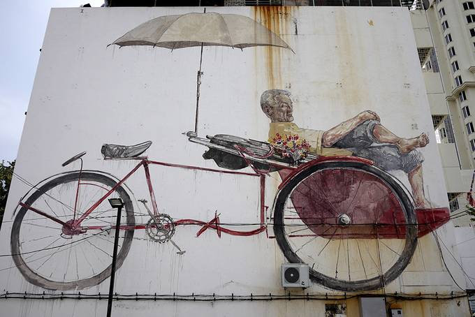 George Town's street art scene kicked off in 2012, when the Lithuanian artist Ernest Zacharevic was commissioned to paint a series of large murals in depicting scenes from everyday Malaysian life. Sadly some of the murals are no longer visible, but the ones that remain are popular with tourists and locals alike.